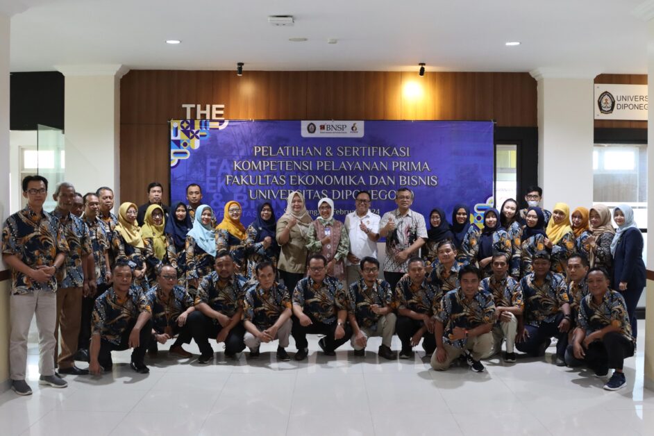 Fakultas Ekonomika dan Bisnis Universitas Diponegoro (FEB Undip) terus mengukuhkan komitmennya dalam meningkatkan standar pelayanan di lingkungan kampus dengan fokus utama pada pelayanan prima. Pelayanan yang optimal dan berkualitas menjadi landasan bagi kepuasan masyarakat yang hadir dalam lingkup kampus FEB Undip. Pada tanggal 29 Februari 2024, FEB Undip menggelar pelatihan khusus bagi para Tenaga Kependidikan (Tendik) terkait pelayanan prima. Pelatihan ini bertujuan untuk memperkuat keterampilan dan pengetahuan Tendik dalam memberikan pelayanan yang terbaik kepada mahasiswa, dosen, dan seluruh stakeholder kampus. Pelatihan tersebut mencakup berbagai aspek penting seperti komunikasi efektif, manajemen waktu, dan penanganan situasi yang beragam di lingkungan kampus. Adapun Narasumber Pelatihan Pelayanan Prima kali ini yaitu; Niken Astiti Ari Wardhani merupakan seorang profesional public speaker trainer bersertifikasi BNSP. Dalam sambutannya, Dekan FEB Undip Prof. Faisal menyampaikan harapannya yang besar terhadap pelatihan pelayanan prima ini. Beliau sampaikan bahwa “melalui pelatihan ini, kapasitas dari para Tendik di FEB dapat ditingkatkan. beliau mendorong para peserta untuk menjadikan pelatihan ini sebagai ajang untuk meningkatkan wawasan dengan cara yang menyenangkan, tanpa perlu merasa tertekan. Karena syarat utama dari pelayanan prima adalah kemampuan untuk menyebarkan kebahagiaan kepada orang lain.” Uji Kompetensi Menyusul pelatihan, pada tanggal 1 Maret 2024, FEB Undip melaksanakan uji kompetensi bagi para Tendik dengan melibatkan asesor bersertifikat dari Badan Nasional Sertifikasi Profesi (BNSP). Uji kompetensi ini dirancang untuk mengukur kemampuan dan kualifikasi Tendik dalam menjalankan tugasnya secara efisien dan profesional. Melalui uji kompetensi ini, diharapkan dapat terukur secara jelas kompetensi dan kualitas pelayanan yang dimiliki oleh Tendik di FEB Undip. Diharapkan, langkah-langkah ini akan memberikan dampak positif bagi seluruh komunitas akademik dan masyarakat yang berinteraksi dengan FEB Undip. Melalui penerapan prinsip pelayanan prima, FEB Undip berupaya menjadikan pengalaman di lingkungan kampus menjadi lebih memuaskan dan berkesan bagi semua pihak yang terlibat.
