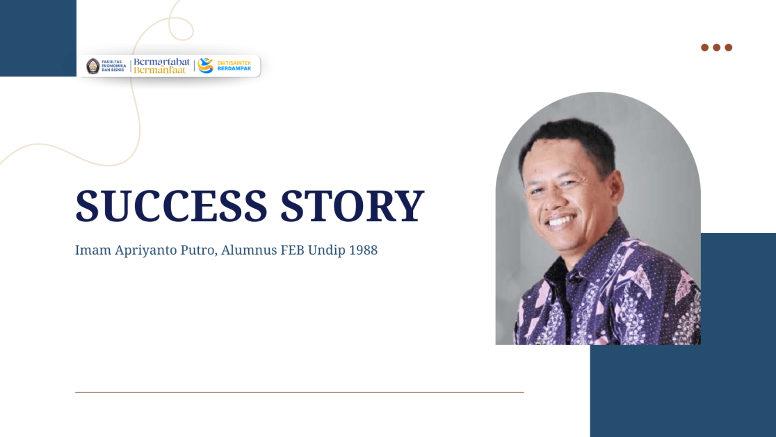 Imam Apriyanto Putro merupakan alumni Fakultas Ekonomika dan Bisnis Universitas Diponegoro (FEB Undip) yang menorehkan karier panjang dan strategis di sektor pemerintahan serta Badan Usaha Milik Negara (BUMN). Saat ini, ia menjabat sebagai Wakil Direktur Utama PT Pupuk Indonesia (Persero), holding BUMN pupuk nasional yang memiliki peran krusial dalam ketahanan pangan Indonesia. Lahir di Cilacap pada tahun 1964, Imam Apriyanto Putro menyelesaikan pendidikan Sarjana Ekonomi Manajemen di Universitas Diponegoro, Semarang, pada tahun 1988. Ia kemudian melanjutkan pendidikan ke jenjang Magister Manajemen di Sekolah Tinggi Ekonomi IBII Jakarta, yang diselesaikannya pada tahun 2000, guna memperkuat kompetensi manajerial dan kepemimpinannya. Karier profesional Imam Apriyanto Putro diawali di Kementerian Keuangan Republik Indonesia, tempat ia mengabdi selama lebih dari dua dekade, yakni pada periode 1991–2013. Di lingkungan Kementerian Keuangan, ia menduduki berbagai posisi strategis, antara lain sebagai Kepala Seksi Analis Pendanaan dan Sumber Daya (1993–2010) serta Asisten Deputi Bidang Penelitian dan Informasi (2010–2012). Pengalaman panjang tersebut membentuk fondasi kuat dalam pengelolaan keuangan negara dan perumusan kebijakan publik. Selanjutnya, ia dipercaya mengemban jabatan Kepala Biro Perencanaan dan Sumber Daya Manusia (2012–2019) serta Sekretaris Kementerian BUMN Republik Indonesia (2013–2019). Dalam periode tersebut, Imam Apriyanto Putro juga menjalankan peran penting di sektor korporasi negara, antara lain sebagai Wakil Komisaris Utama PT Bank Mandiri (Persero) Tbk pada tahun 2015–2019. Pengalaman lintas sektor pemerintahan dan korporasi BUMN mengantarkannya pada posisi kepemimpinan di industri pupuk nasional. Ia menjabat sebagai Komisaris Utama PT Pupuk Sriwidjaja (Pusri) Palembang pada periode 2020–2022, sebelum kemudian dipercaya sebagai Wakil Direktur Utama PT Pupuk Indonesia (Persero) sejak 19 November 2019. Kiprah Imam Apriyanto Putro mencerminkan kontribusi nyata alumni FEB Undip dalam mengisi posisi strategis di tingkat nasional. Perjalanannya menunjukkan bagaimana fondasi akademik di bidang ekonomi dan manajemen, yang diperoleh di Undip, dapat bertransformasi menjadi kepemimpinan yang berdampak langsung pada pengelolaan BUMN dan pembangunan sektor strategis negara.