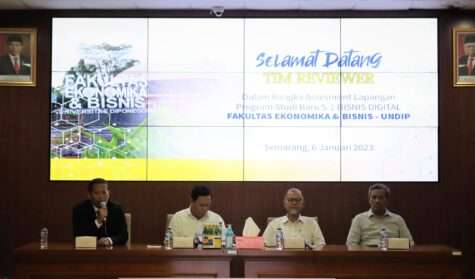Semarang, 06 Januari 2023. Fakultas Ekonomika dan Bisnis Universitas Diponegoro menerima Tim Reviewer Undip untuk melaksanakan kegiatan asesmen lapangan terhadap rencana pembukaan Program Studi baru “S-1 Bisnis Digital”. Kegiatan diawali dengan acara pembukaan dari Dekan Fakultas Ekonomika dan Bisnis Undip yaitu Prof. Dr. Suharnomo, S.E., M.Si. dan sambutan dari perwakilan Tim Reviewer yang hadir.