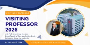 Semarang, 25 March 2026 – The Faculty of Economics and Business (FEB), Universitas Diponegoro (Undip), organized a two-day Visiting Professor Seminar and Workshop featuring Professor Brian Wong Kee Mun from Swinburne University of Technology Sarawak, Malaysia. The program provides an international academic platform for faculty members and students to strengthen knowledge exchange, research collaboration, and academic publication capacity. The Visiting Professor program will begin with a seminar session discussing contemporary marketing strategies in the digital era. Participants will explore how businesses can effectively engage Generation Y and Generation Z, who dominate today’s digital consumer landscape. Activity Theme / Focus Date Time Location Seminar Winning the Digital Generation: Marketing Strategies for Gen Y and Gen Z Wednesday, April 1, 2026 08.30 – 12.00 WIB Ruang Sidang Utama, 2nd Floor, Dekanat Building, FEB Undip Workshop on Publication From Research to Publication: Writing High-Quality Business Journal Articles Thursday, April 2, 2026 09.00 – 12.00 WIB Room EK.203, Kewirausahaan Building, FEB Undip Manuscript Clinic Workshop Research manuscript mentoring and publication preparation Thursday, April 2, 2026 13.00 – 15.30 WIB Room EK.203, Kewirausahaan Building, FEB Undip The second day of the program will focus on academic writing and publication skills through the publication workshop. Participants will gain practical guidance on structuring high-quality research manuscripts, meeting international journal standards, and increasing the chances of publication in reputable journals. The program will conclude with a Manuscript Clinic Workshop, where selected participants will receive developmental feedback directly from Prof. Brian Wong Kee Mun. This session is designed to support researchers in refining their manuscripts and exploring opportunities for collaborative publication in Scopus-indexed journals. Through this Visiting Professor initiative, FEB Undip continues to strengthen its commitment to international academic collaboration, research development, and global knowledge exchange, while supporting faculty members and students in advancing their academic and research impact.