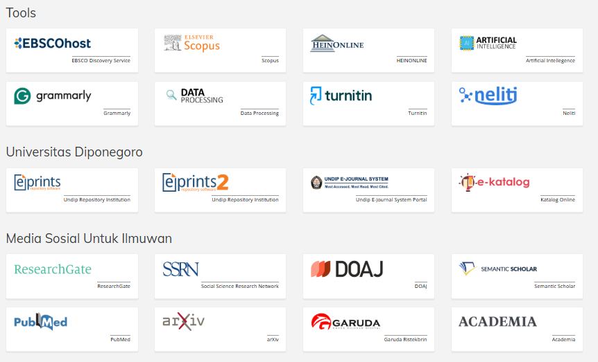 Diponegoro University provides access to a wide range of national and international journals that can be accessed free of charge by its academic community. This service is now even more convenient through the Diponegoro University Single Sign-On (SSO) platform. Simply log in using your SSO account to easily search, read, and download various scholarly references that support learning, research, and publication activities.