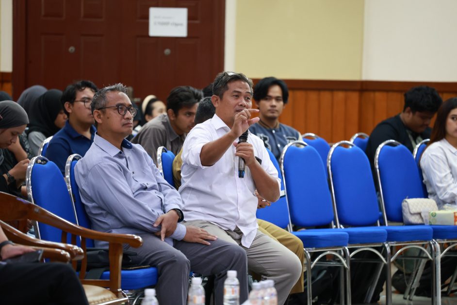 kegiatan dilanjutkan dengan sesi kuliah umum oleh Kepala Badan Kebijakan Perdagangan (BKPerdag), Rusmin Amin. Dalam paparannya, Rusmin Amin menegaskan komitmen Kementerian Perdagangan untuk terus bersinergi dengan kalangan universitas dan akademisi dalam menghadapi tantangan global di sektor perdagangan. Ia menyoroti kebijakan tarif Amerika Serikat di bawah pemerintahan Donald Trump yang berdampak pada beberapa sektor ekspor unggulan Indonesia. “Kolaborasi antara pemerintah dan kampus sangat penting dalam merumuskan langkah strategis untuk menjaga daya saing dan keberlanjutan ekspor nasional,” tegasnya.