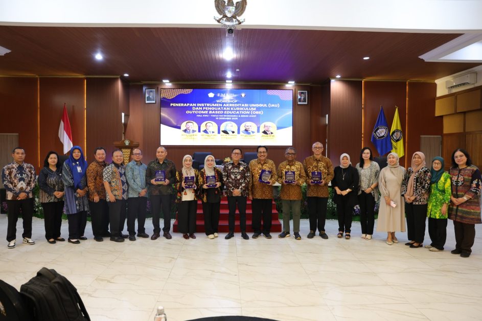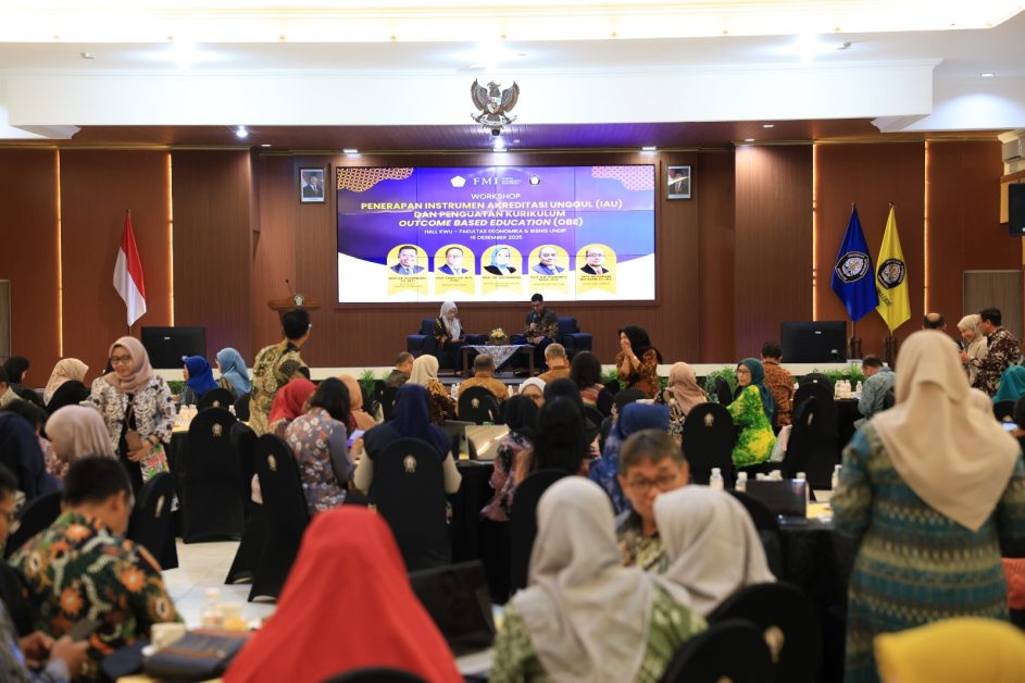 Fakultas Ekonomika dan Bisnis Universitas Diponegoro (FEB Undip) memperkuat komitmennya dalam peningkatan mutu pendidikan tinggi melalui penyelenggaraan Workshop Penerapan Instrumen Akreditasi Unggul (IAU) dan Penguatan Kurikulum Outcome Based Education (OBE). Kegiatan ini dilaksanakan di Hall Kewirausahaan FEB Undip pada Senin, 16 Desember 2025.