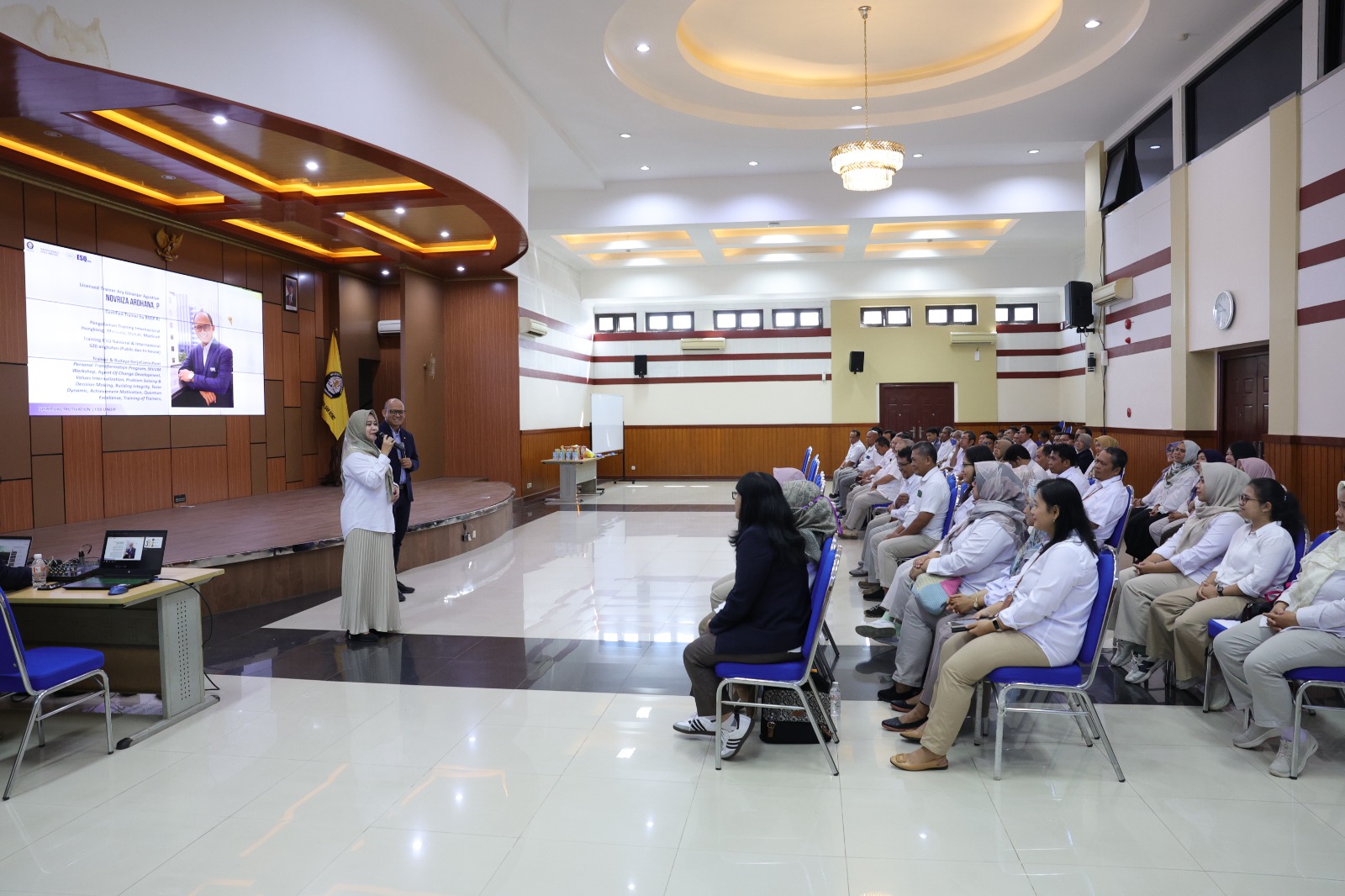 Kegiatan pelatihan dikemas melalui sesi utama pelatihan public speaking yang dipadukan dengan penguatan nilai serta diskusi interaktif. FEB Undip menghadirkan Novriza Ardhana P, trainer dari ESQ Corp, yang berpengalaman dalam pengembangan sumber daya manusia. Melalui pelatihan ini, FEB Undip berharap tenaga kependidikan dapat meningkatkan kepercayaan diri, kompetensi komunikasi, serta kualitas layanan kepada seluruh sivitas akademika, sebagai wujud komitmen fakultas dalam mengembangkan SDM yang unggul, profesional, dan berintegritas.