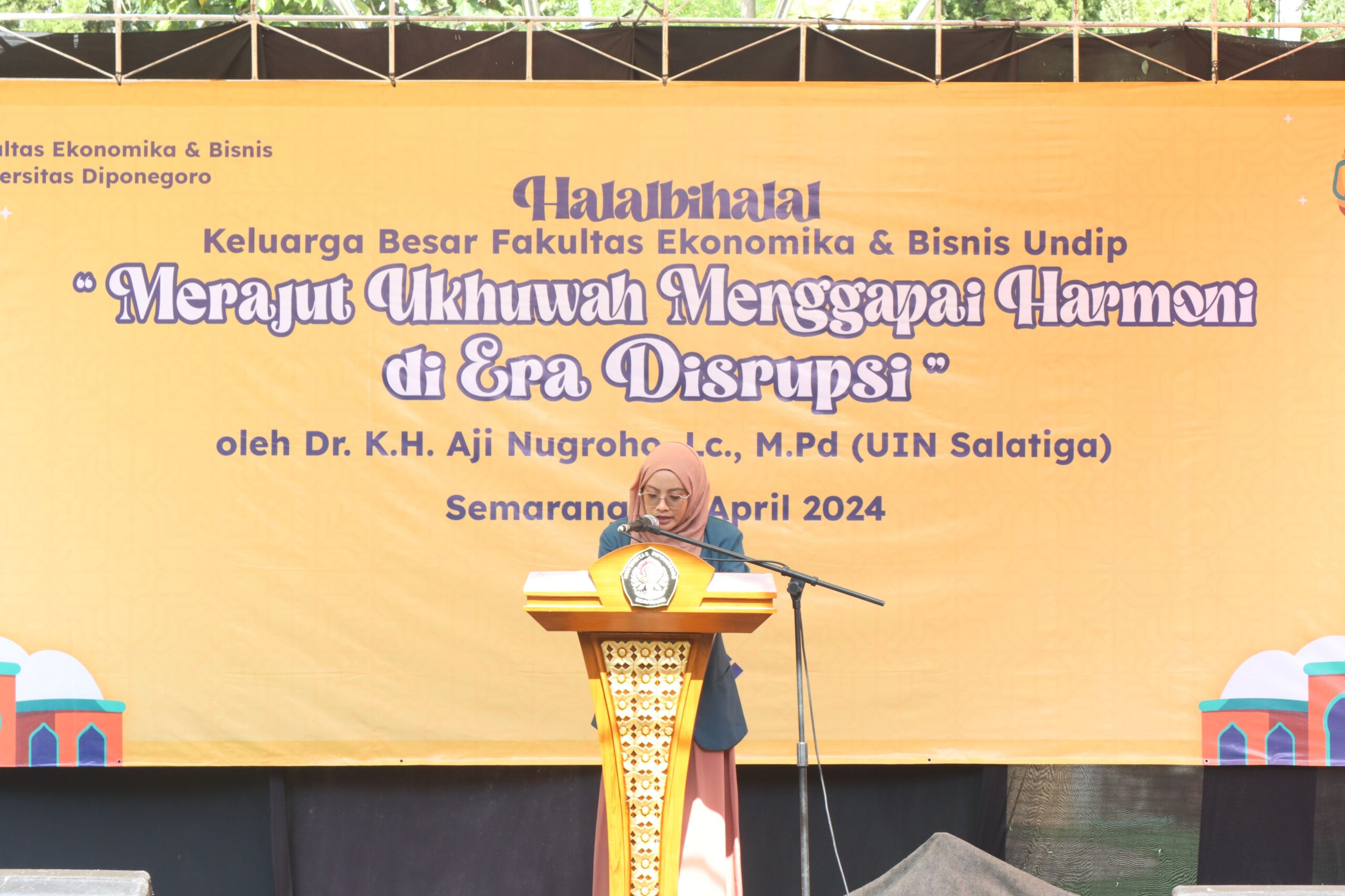 “Majelis Halalbihalal ini kita harapkan dapat menjadi media untuk saling memaafkan, saling melapangkan dada, dan tentu saja saling meningkatkan silaturahmi dan keakraban persaudaraan diantara keluarga besar FEB Undip”. tambahnya