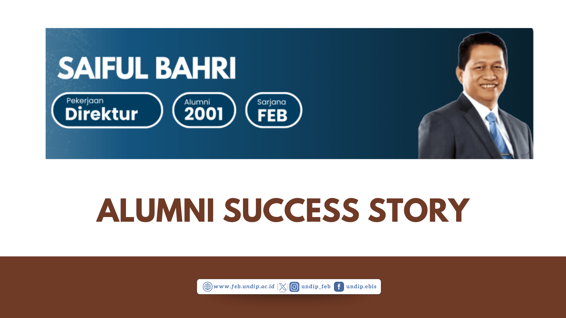 Saiful Bahri, Direktur Operasional Perum Peruri, merupakan alumni Diploma III Akuntansi Fakultas Ekonomi dan Bisnis Universitas Diponegoro (UNDIP) angkatan 1994. Ia bekerja di Aneka Ilmu sebagai manajer pemasaran selama 9 tahun. Menjadi Direktur Operasi di Perum Peruri, Saiful Bahri adalah manajer pemasaran selama 9 tahun. Lahir di Cilacap, pada tahun 1971, Saiful Bahri lulus dengan gelar Diploma Akuntansi dari Fakultas Ekonomi Universitas Diponegoro (Undip) pada tahun 1994. Lima tahun kemudian, pada tahun 1999, ia mengejar gelar Sarjana di fakultas yang sama dan berhasil memperoleh gelar sarjana pada tahun 2001.