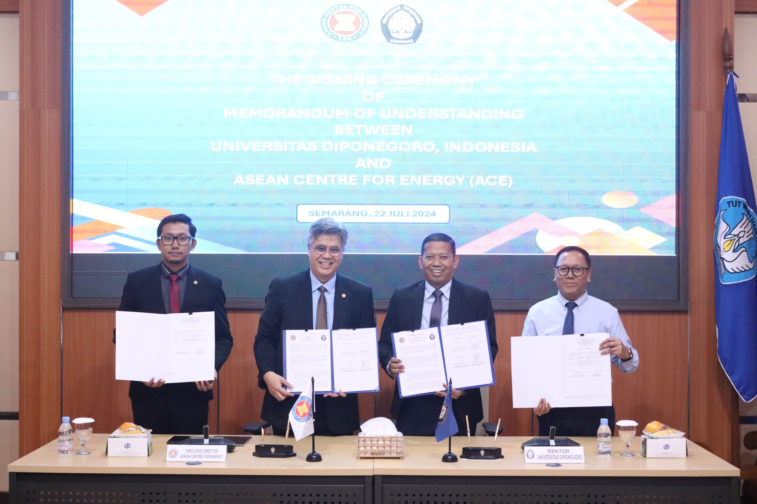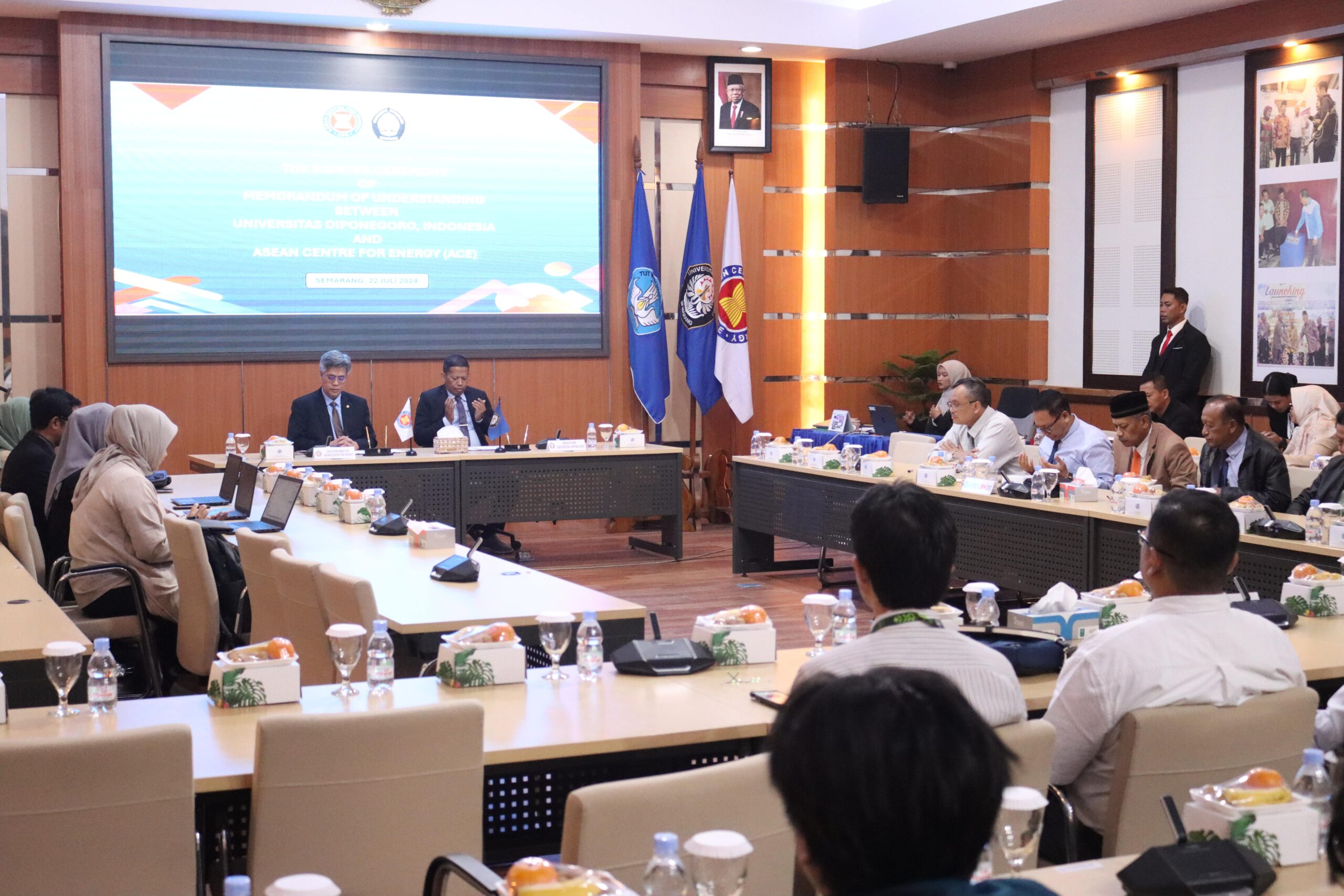 Universitas Diponegoro (UNDIP) menandatangani Nota Kesepahaman dengan ASEAN Centre for Energy (ACE) pada Senin, 22 Juli 2024, di Ruang Sidang Rektor UNDIP Tembalang.